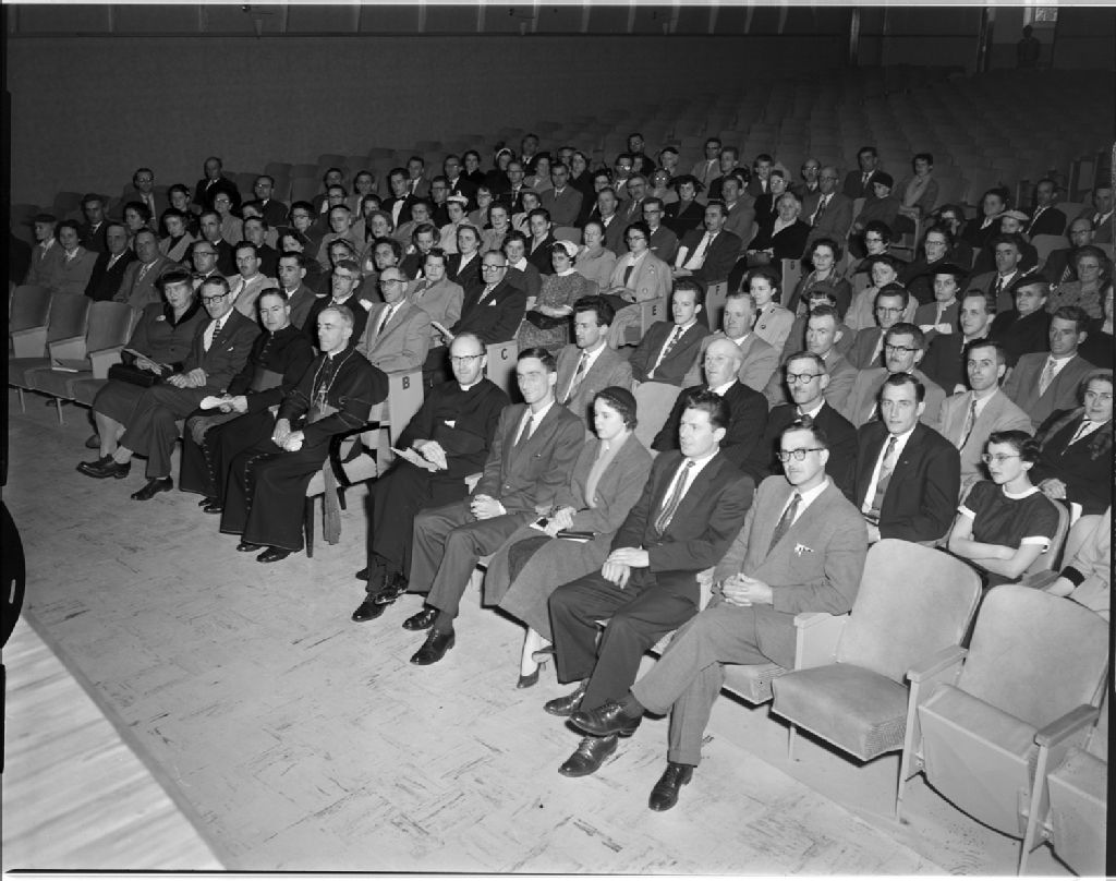 Groupe d'action catholique au centre de loisirs Saint-Germain, 9 octobre 1955, Archives nationales à Rimouski, Fonds J.-Gérard Lacombe, (01R,P24,S3,SS7,D419), J.-Gérard Lacombe.