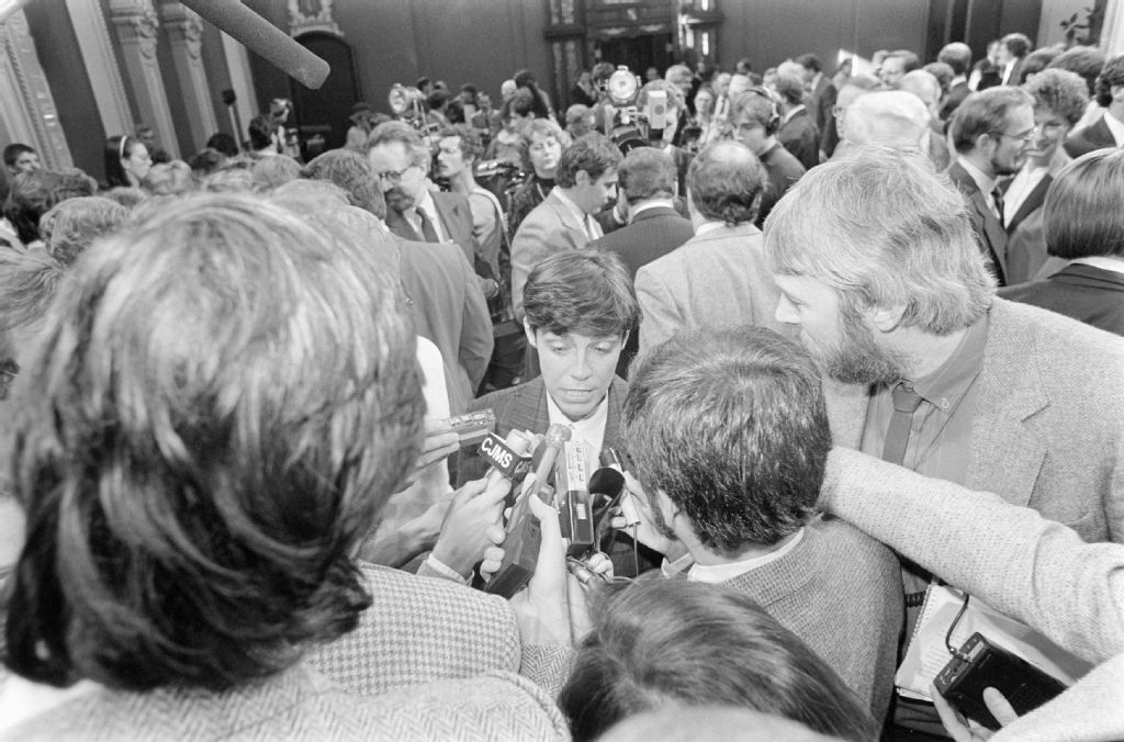 - A1 - B3 à 6 : Louise Beaudoin Dorlot, ministre des Relations internationalesA2-3 : Jeau-Guy Parent, ministre du Commerce extérieurB1 à 3 - C - D5-6 : Les nouveaux ministres du gouvernement Johnson:- Jeau-Guy Rodrigue, ministre de l'Enseignement supérieur et de la Science et de la Technologie- Michel Clair, président du Conseil du Trésor et ministre de l'Énergie et des Ressources- Bernard Landry, ministre des Finances et président du comité de développement économique- Rollande Cloutier, ministre déléguée aux Relations avec les citoyens et responsable de l'Office des personnes handicapées- Élie Fallu, ministre des Communautés culturelles et de l'Immigration- Louise Beaudoin Dorlot, ministre des Relations internationales- Lise Denis, ministre déléguée à la Condition féminine- Jeau-Guy Parent, ministre du Commerce extérieur- Gérald Godin, ministre des Affaires culturellesD1 à 4 : Pierre-Marc Johnson, premier ministre