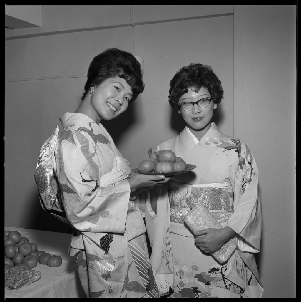 Mlle Orange dans un costume japonais, 27 novembre 1962, Archives nationales à Gatineau, Fonds Champlain Marcil, (07H,P174,S1,D28865), Attribuée à Champlain Marcil.