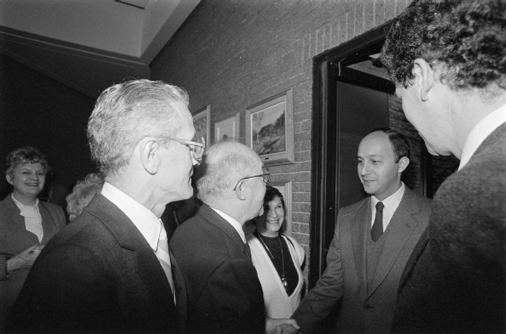 Visite officielle au Québec du Premier Ministre de la République Française, monsieur Laurent Fabius, novembre 1984, Archives nationales à Québec, Fonds Ministère des Communications, (03Q,E10,S44,SS1,D84-848), Marc Lajoie.