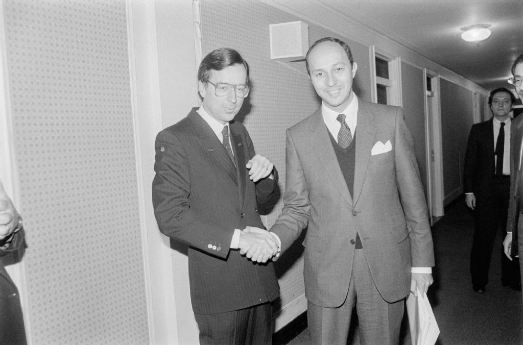 Visite officielle au Québec du Premier Ministre de la République Française, monsieur Laurent Fabius, 9 novembre 1984, Archives nationales à Québec, Fonds Ministère des Communications, (03Q,E10,S44,SS1,D84-860), Bernard Vallée.