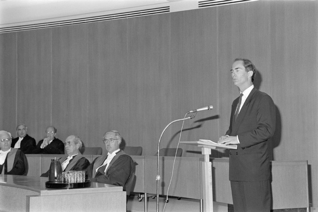 Ouverture des tribunaux au Palais de justice de Montréal par le ministre Gil Rémillard du ministère de la Justice