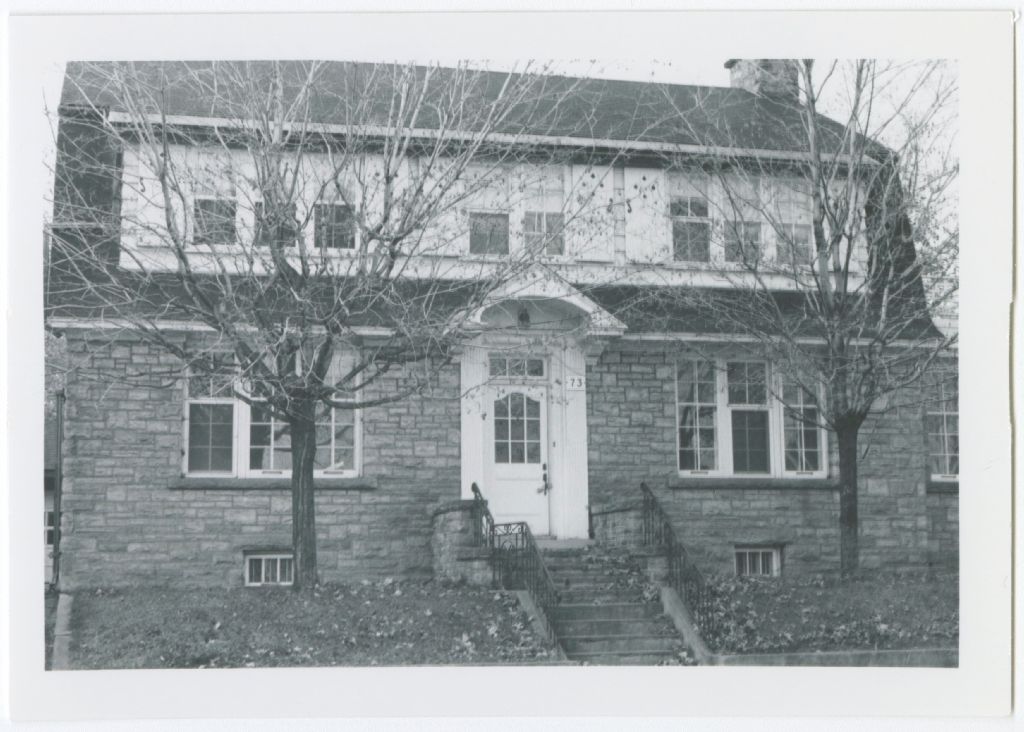 Photographie de la façade principale de la résidence du 73 rue Laurier à Hull. Il s'agit de l'ancienne résidence familiale des Baillot, famille importante dans l'histoire de l'automobile à Gatineau.
