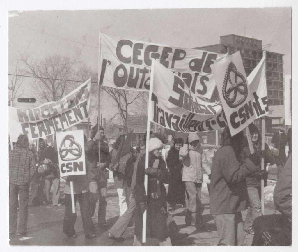 Manifestation CSN, 193?-1977, Archives nationales à Gatineau, Fonds Roger Poirier, (07H,P134,S6,SS2,D1,P1), Photographe non identifié.