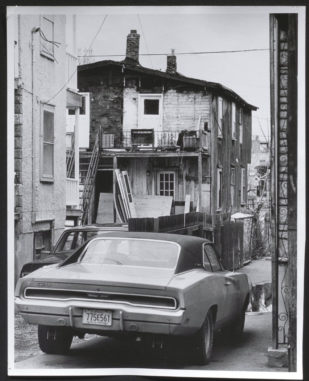 Arrière-cours de logements d'habitation à Hull, 1974, Archives nationales à Gatineau, Fonds Roger Poirier, (07H,P134,S6,SS3,D3,P7), Photographe non identifié.