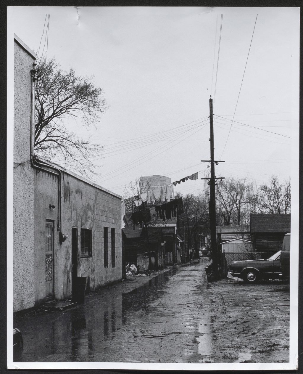 Arrière-cours de logements d'habitation à Hull, [1970-1979], Archives nationales à Gatineau, Fonds Roger Poirier, (07H,P134,S6,SS3,D3,P18), Photographe non identifié.