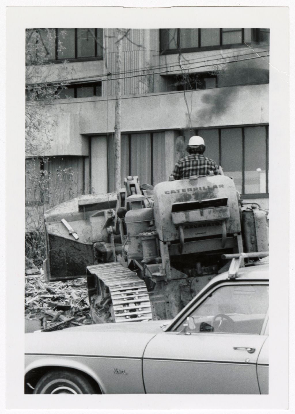 Chargeur frontal à chenilles Caterpillar sur un site de démolition à Hull, [1970-1980], Archives nationales à Gatineau, Fonds Roger Poirier, (07H,P134,S6,SS5,D1,P4), Photographe non identifié.