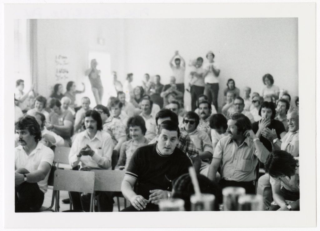 Un rassemblement de chauffeurs de taxis, [1970-1980], Archives nationales à Gatineau, Fonds Roger Poirier, (07H,P134,S6,SS8,D2,P4), Photographe non identifié.
